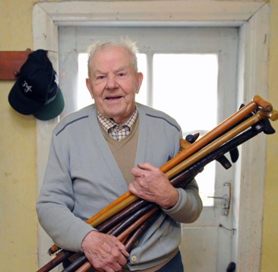 „Viskas prasidėjo nuo to, kad mano amžiną atilsį žmonos sesuo Panevėžyje nerado tinkamos lazdos. Paprašė manęs išdrožti. Ėmiau ir išdrožiau, visai neblogai įvertino. Esu pridrožęs jų galybę, visų dar neišdovanojau. Šaukštai didesnę paklausą turi – nė vieno neliko, reikės dar padaryti. Anksčiau kryžius drožinėjau, dabar jau man per sudėtinga“, – pasakojo senjoras.