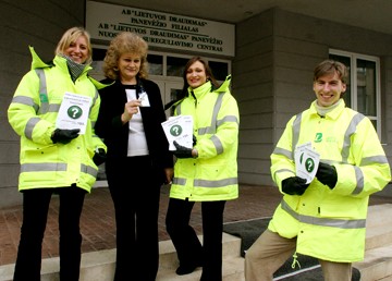 A.Repšio nuotr. AB “Lietuvos draudimas” Panevėžio filialo direktorė Danutė Milčienė (antra iš kairės) kartu su akcijos “Draudimo patrulis” dalyviais kviečia atnaujinti vairuotojų civilinės atsakomybės draudimo sutartis.
