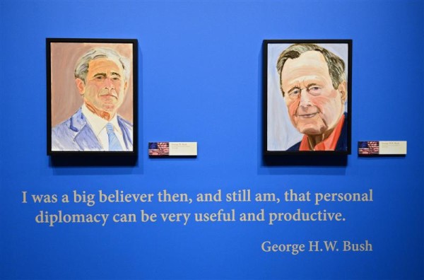 Dž. V Bušo paveiksluose galima išvysti 24 pasaulio lyderius, kuriuos jis sutiko, kai aktyviai dalyvavo politiniame gyvenime. Tarp jų yra ir Rusijos prezidento Vladimiro Putino portretas.