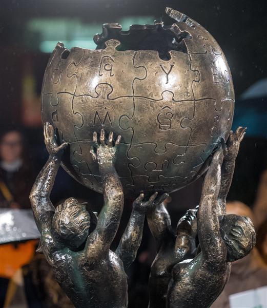 Armėnų skulptoriaus Mihrano Hakobjano kūrinys vaizduoja dvi moteris ir du vyrus, virš savo galvų laikančius Žemės rutulį, sudarytą iš dėlionės fragmentų. Jis pastatytas ant postamento ir atrodo lyg būtų lietas iš bronzos. Tačiau paminklas pagamintas iš orams atsparaus plastiko. Paminklo išlaidas – 62 000 zlotų (15 000 eurų) – padengė miesto bendruomenė.