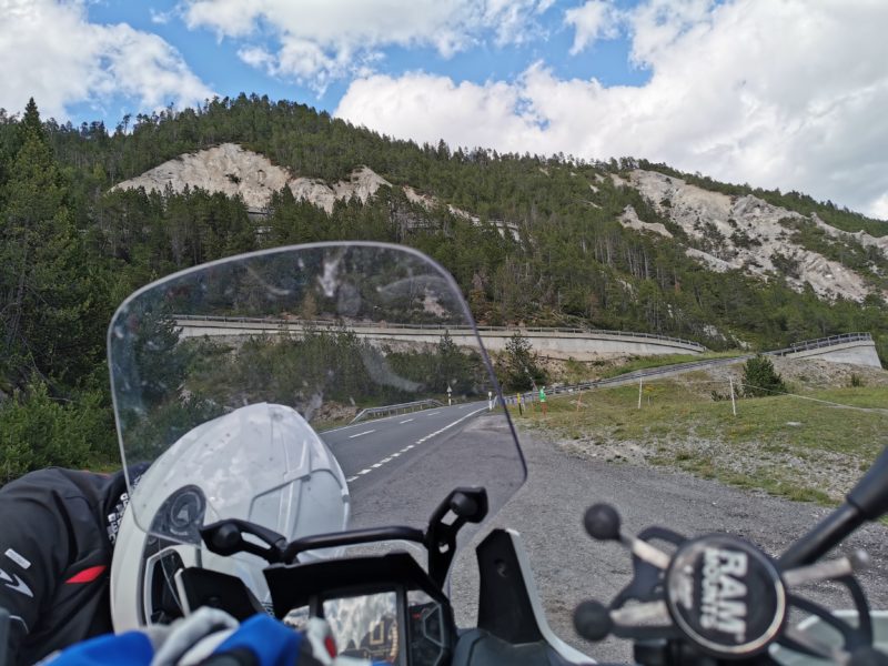 Motociklininkai patraukė link Šveicarijos, vaizdingosios Stelvio kalnų perėjos. Anot Nerijaus, tai buvusi pati įsimintiniausia kalnų perkėla. Net jei oras pasitaikė išties prastokas ir visai nepriminė vasaros – liepos mėnesį temperatūra nukrito iki šešių laipsnių. O kur dar lietus, sunkinęs kelią žemyn tekančiomis upelių kasomis?