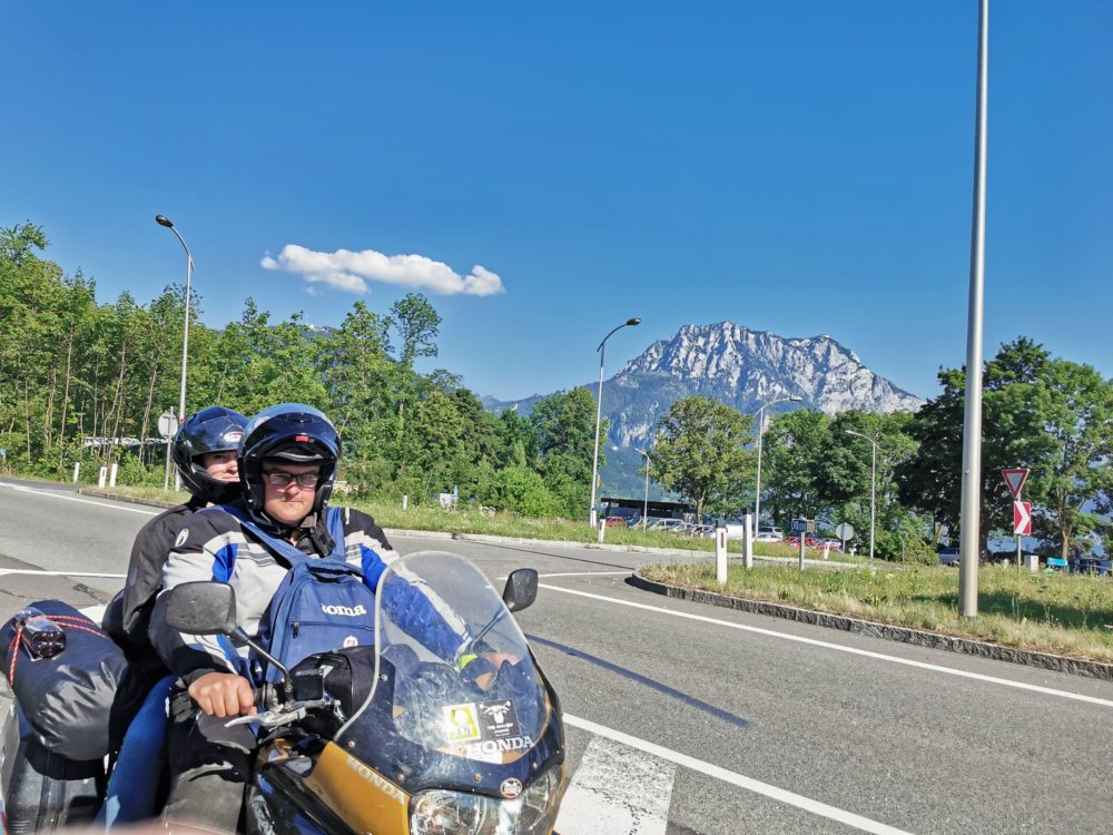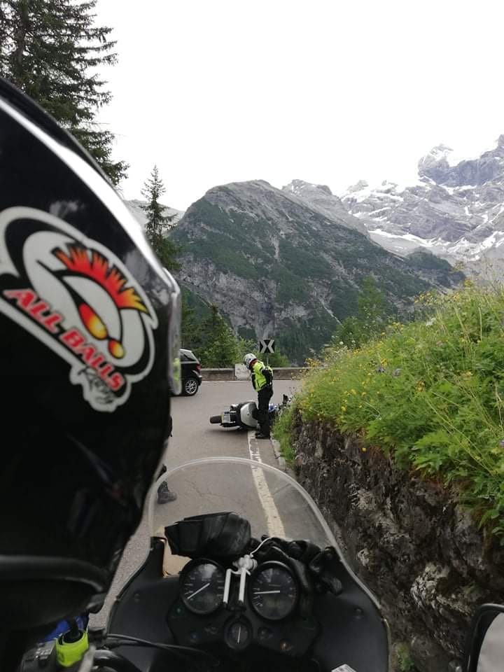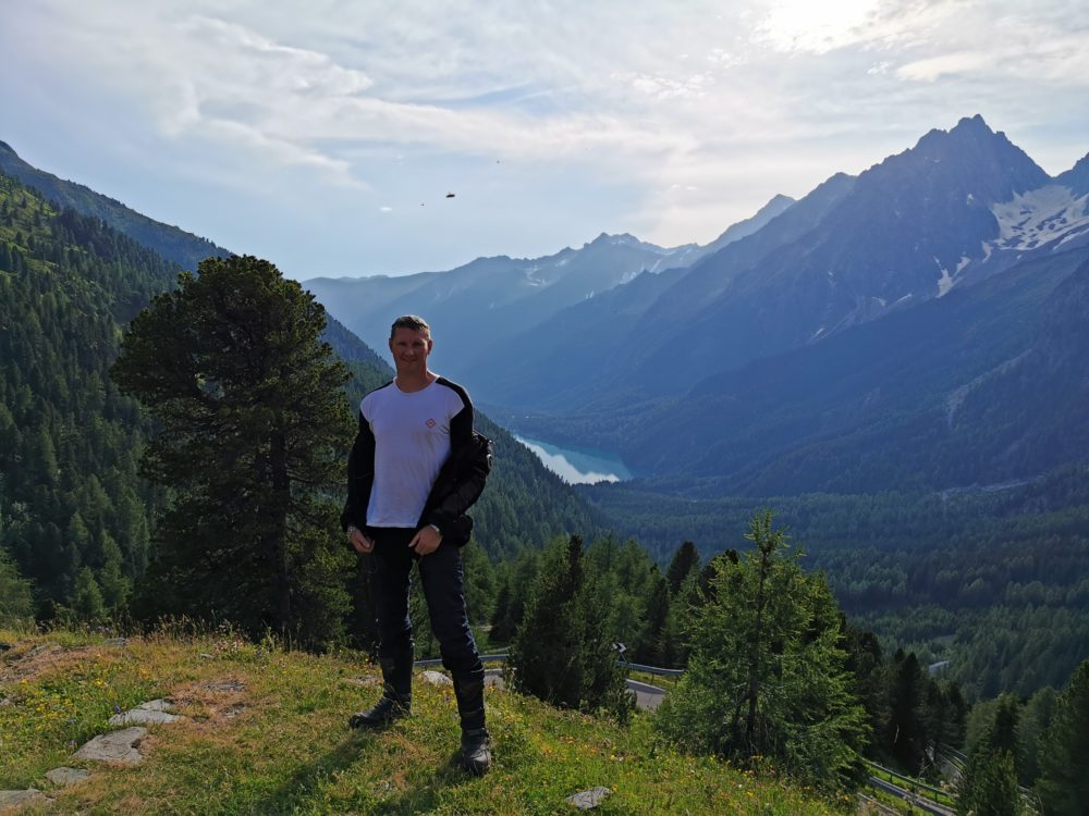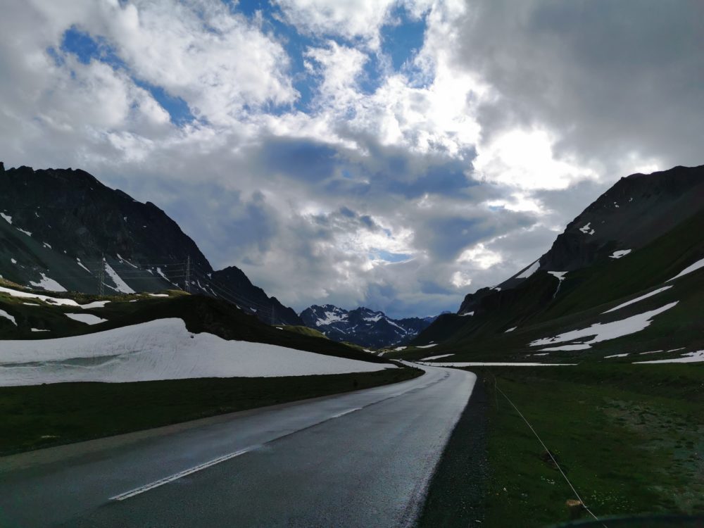 Motociklininkai patraukė link Šveicarijos, vaizdingosios Stelvio kalnų perėjos. Anot Nerijaus, tai buvusi pati įsimintiniausia kalnų perkėla. Net jei oras pasitaikė išties prastokas ir visai nepriminė vasaros – liepos mėnesį temperatūra nukrito iki šešių laipsnių. O kur dar lietus, sunkinęs kelią žemyn tekančiomis upelių kasomis?
