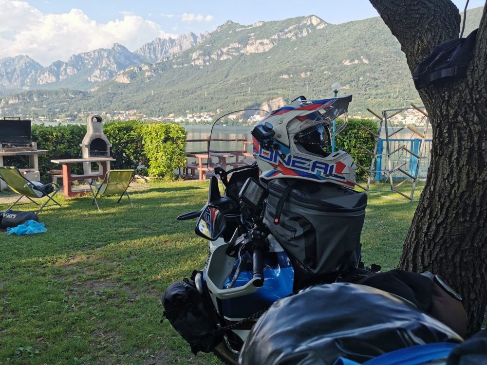 Prisisotinę kalnų vaizdų, motociklininkai pakeitė maršrutą ir pasuko į Italijos pietus – link užburiančio Komo ežero. Apsistoję kempinge gavo įspūdingą vietą prie pat kranto.