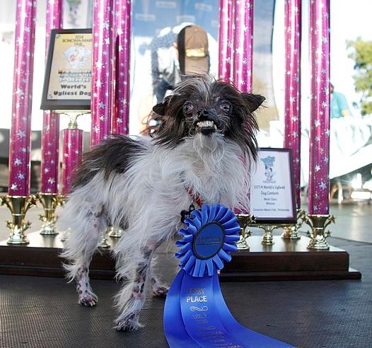 Nedidelis šuo mišrūnas, vardu Riešutas, Kalifornijoje, Petalumoje, vykusiame konkurse laimėjo baisiausio pasaulyje šuns titulą. Jam teko nurungti ne vieną konkurentą, bet galiausiai tapęs laimėtoju su šeimininke Hole Čandler jis iškeliavo namo. Vieni šunys buvo pliki, kiti turėjo karpų, vienas netgi neturėjo nosies. Dauguma šunų buvo dabartinių šeimininkų paimti iš prieglaudų.