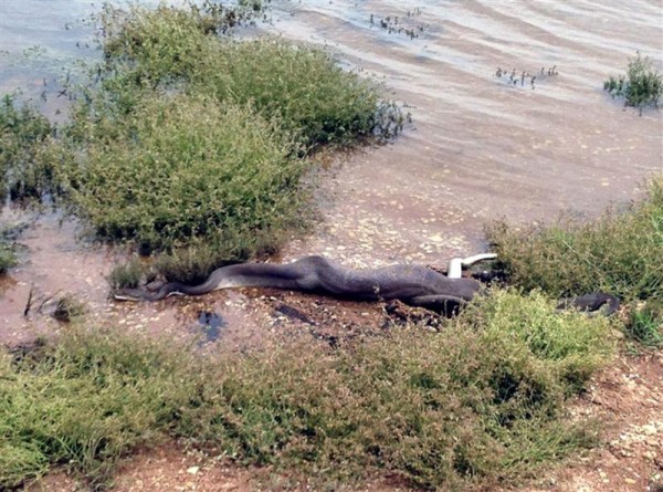 Abu gyviai kovojo vieno ežero vandenyje. Vėliau gyvatė krokodilą, kuris tuo metu jau buvo negyvas, išsitempė į krantą. „Maždaug po dešimties minučių krokodilo neliko“, – pasakojo K. Korlis.