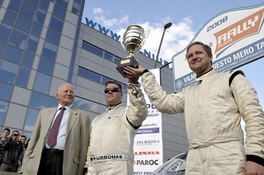lizingo“ ralyje buvo S.Girdauskas (dešinėje) su P.Urbonu, jiems nugalėtojų taurę