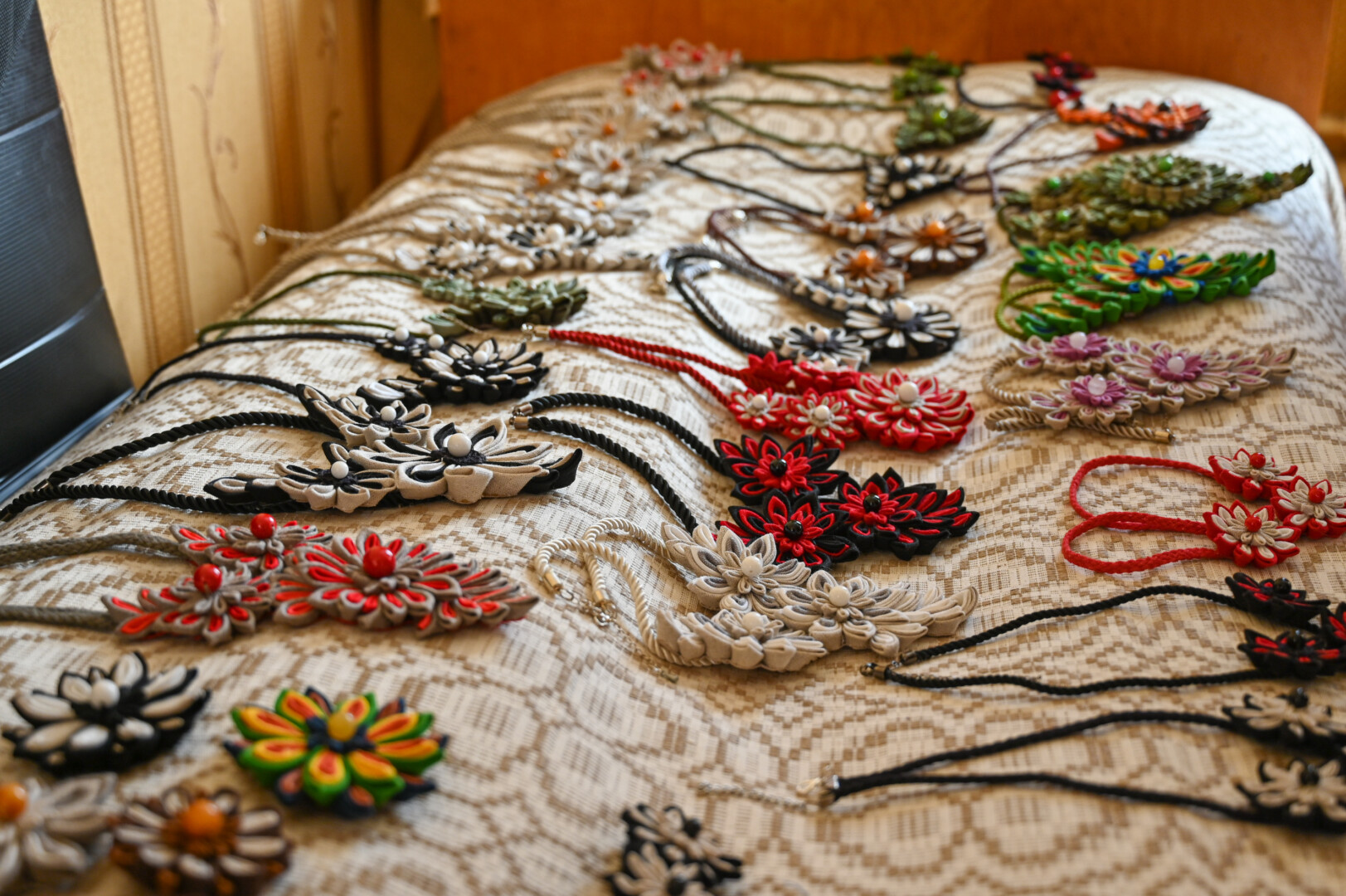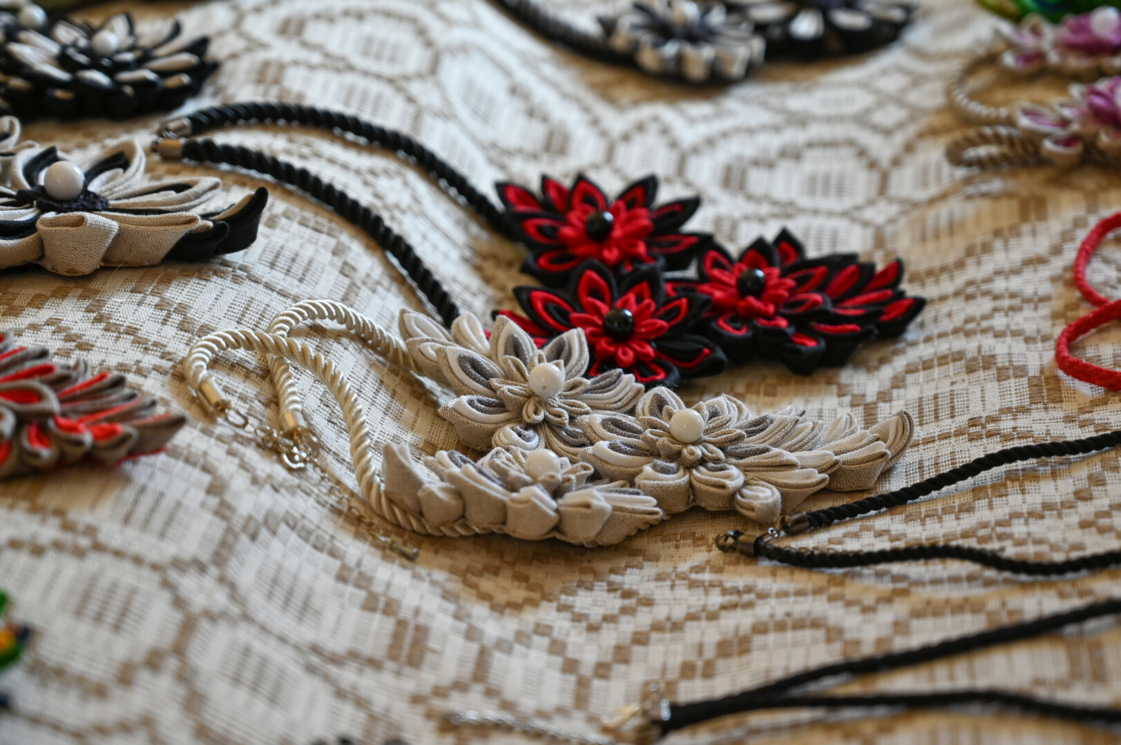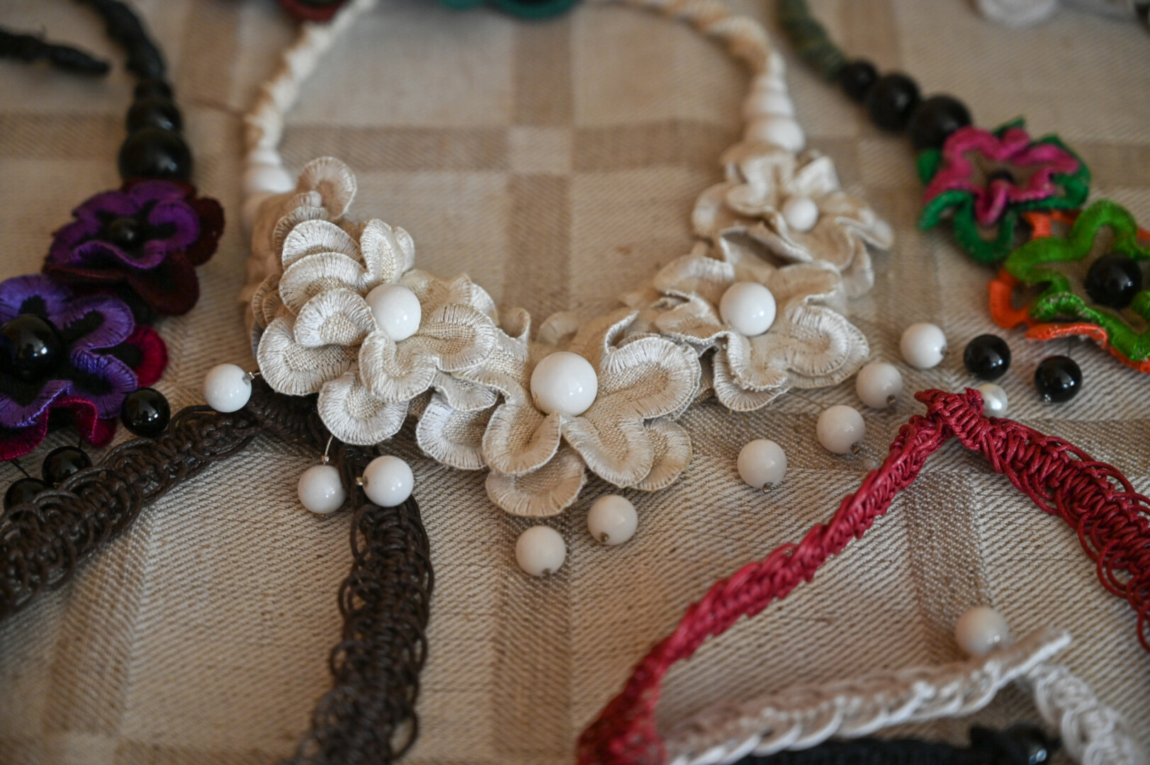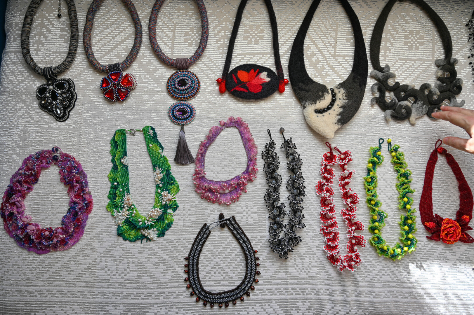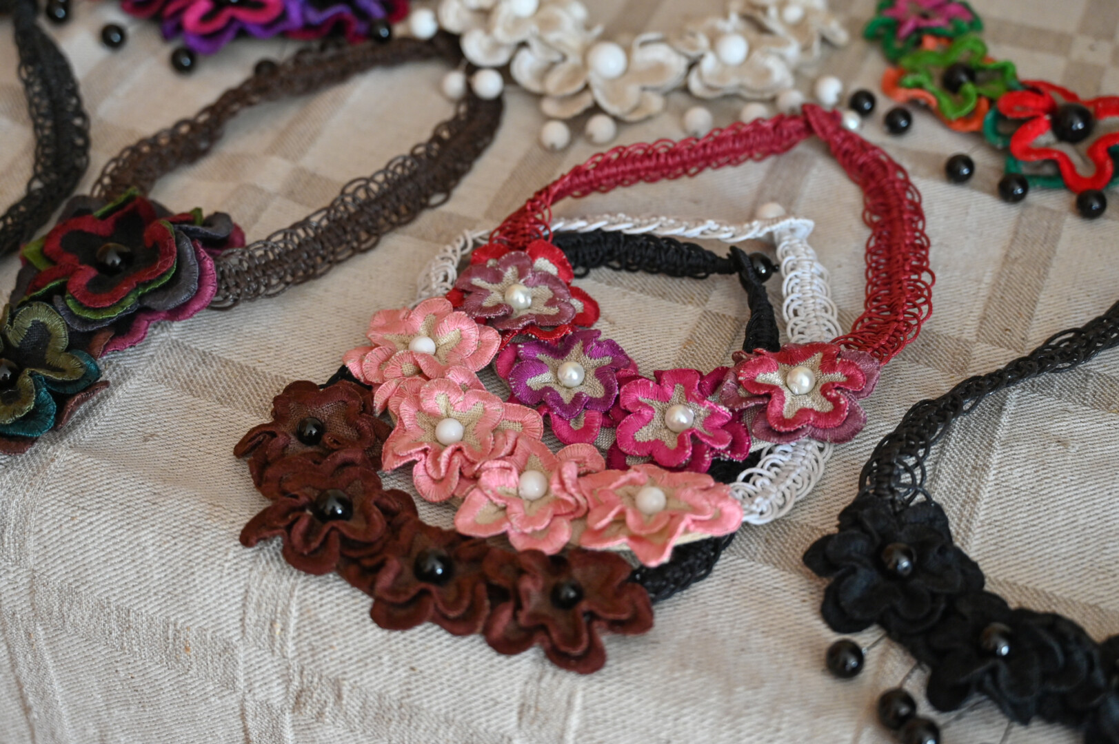 Be veltų šedevrų, gausu Bronės sukurtų papuošalų iš karoliukų bei lino. Pastarieji taip pat išskirtiniai, vienetiniai, tinkantys tiek prie vakarinės suknelės, tiek darbo drabužio.