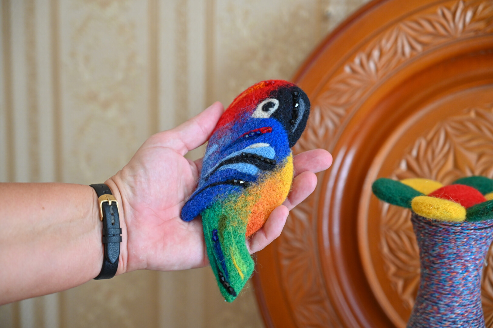 Dukra skolinga neliko – mamą išmokė kurti iš veltinio seges, kurios šiai pavykstančios tikrai dailios.