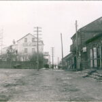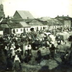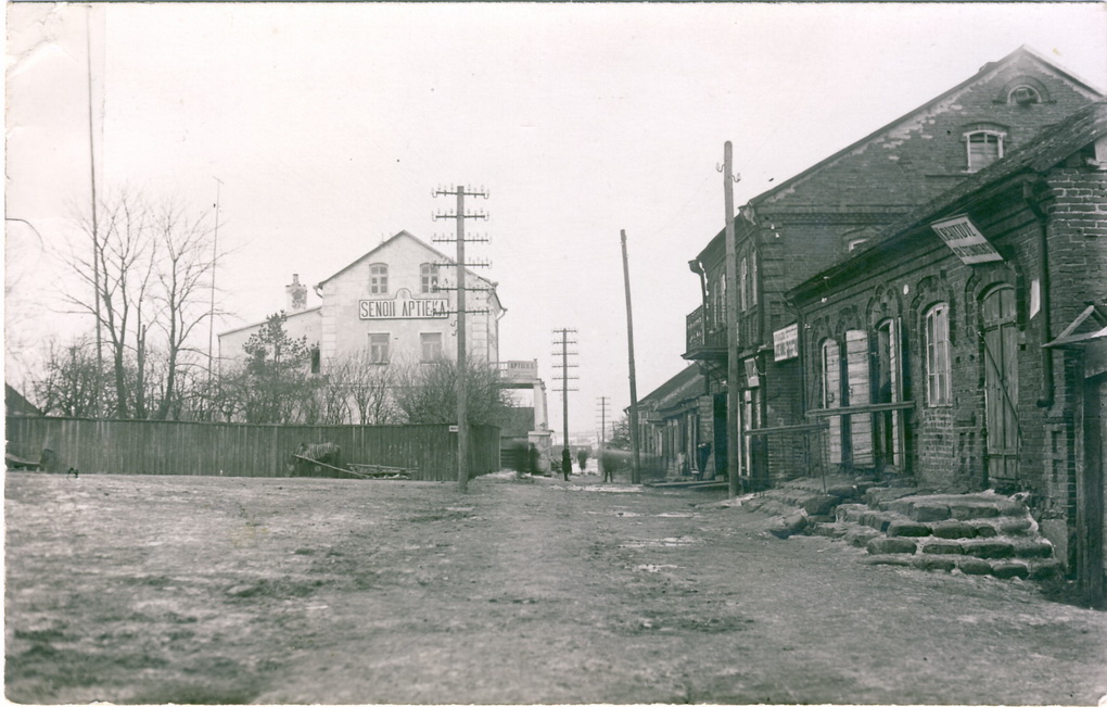 Žydų parduotuvės Turgaus aikštėje. Centre – Joselio Jachilevičiaus geležies parduotuvė. KUPIŠKIO ETNOGRAFIJOS MUZIEJAUS ARCHYVO nuotr.