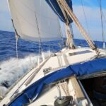 „Šaukiu Simą, kad jis stotų prie vairo, nes man geriau sekasi su denio darbais, nei vairuoti. Jis bando stotis prie vairo, o aš šliaužioju stengdamasi, kad skraidančios ir denį plakančios virvės nenuplaktų ir manęs, – juokiasi Vita. – Pasileidžiam pavėjui ir pabangiui, atsisėdame visame tame jovale, išorėje šlapi nuo bangų ir nuo situacijos sušilę iš vidaus. Bet viskas gerai – kitas kartas jau buvo sklandesnis: maždaug per valandą susitvarkėme visą jovalėlį ir jau pasikėlėme bures.“