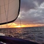 Vėjo greitis tąkart pakilo iki aštuoniolikos mazgų. Visgi pora save ramino, jog čia nieko baisaus, viskas pagal planą, bet kai pradėjo mažinti bures, nuotykiai ir grumtynės su siaučiančiais gūsiais tik prasidėjo.