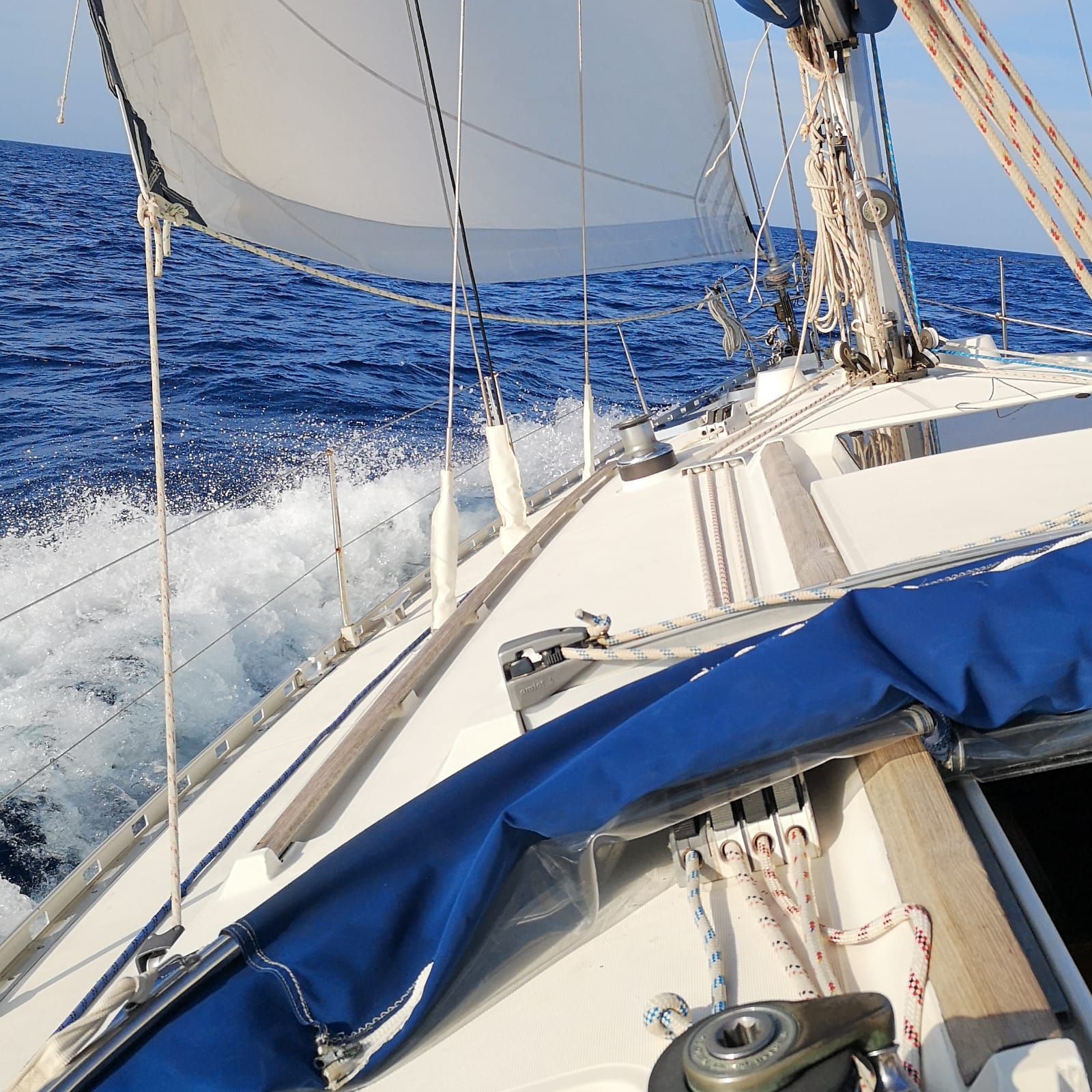 Vėjo greitis tąkart pakilo iki aštuoniolikos mazgų. Visgi pora save ramino, jog čia nieko baisaus, viskas pagal planą, bet kai pradėjo mažinti bures, nuotykiai ir grumtynės su siaučiančiais gūsiais tik prasidėjo.
