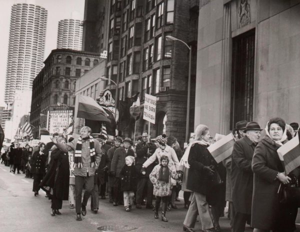 Nuotraukoje – 1970-ųjų gruodį Čikagoje vykęs protesto mitingas dėl lietuviui jūreiviui nesuteikto prieglobsčio. LYA, archyvų nuotraukos
