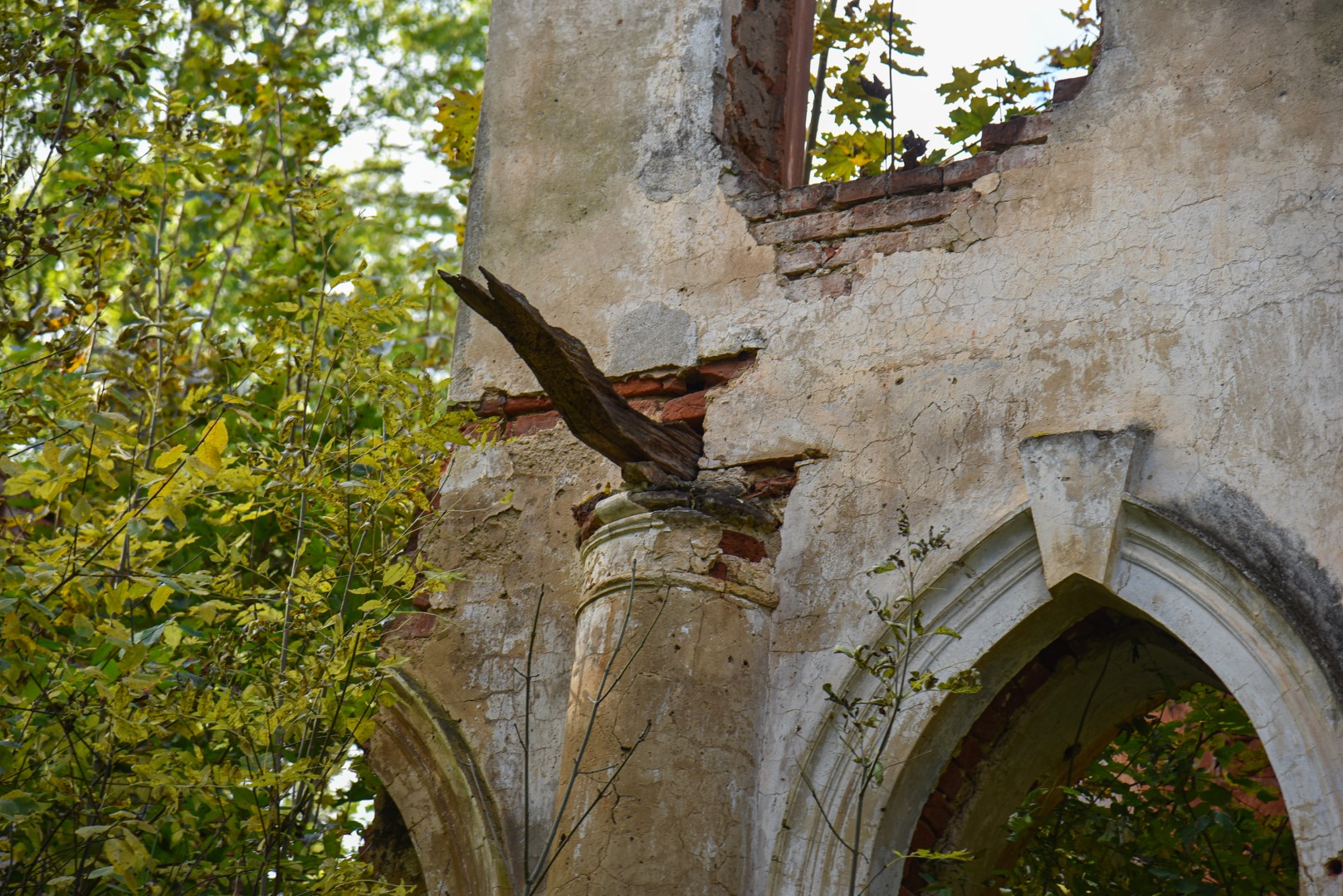 Akiduobes primena griūvančioje sienoje išlikusios arkinių langų kiaurymės, o štai bedantę burną praeivis išvysta pažvelgęs į buvusių durų ertmę.