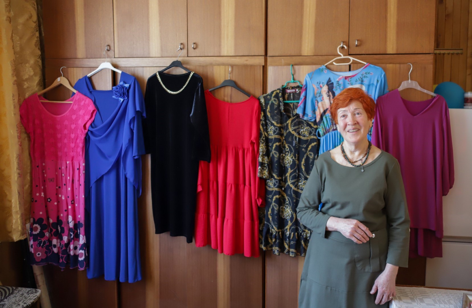A. Vilčinskienė šypsosi ir skaičių jau pametusi, kiek suknelių siūbuoja jos spintoje, bet tikriausiai bus daugiau nei aštuonios dešimtys.