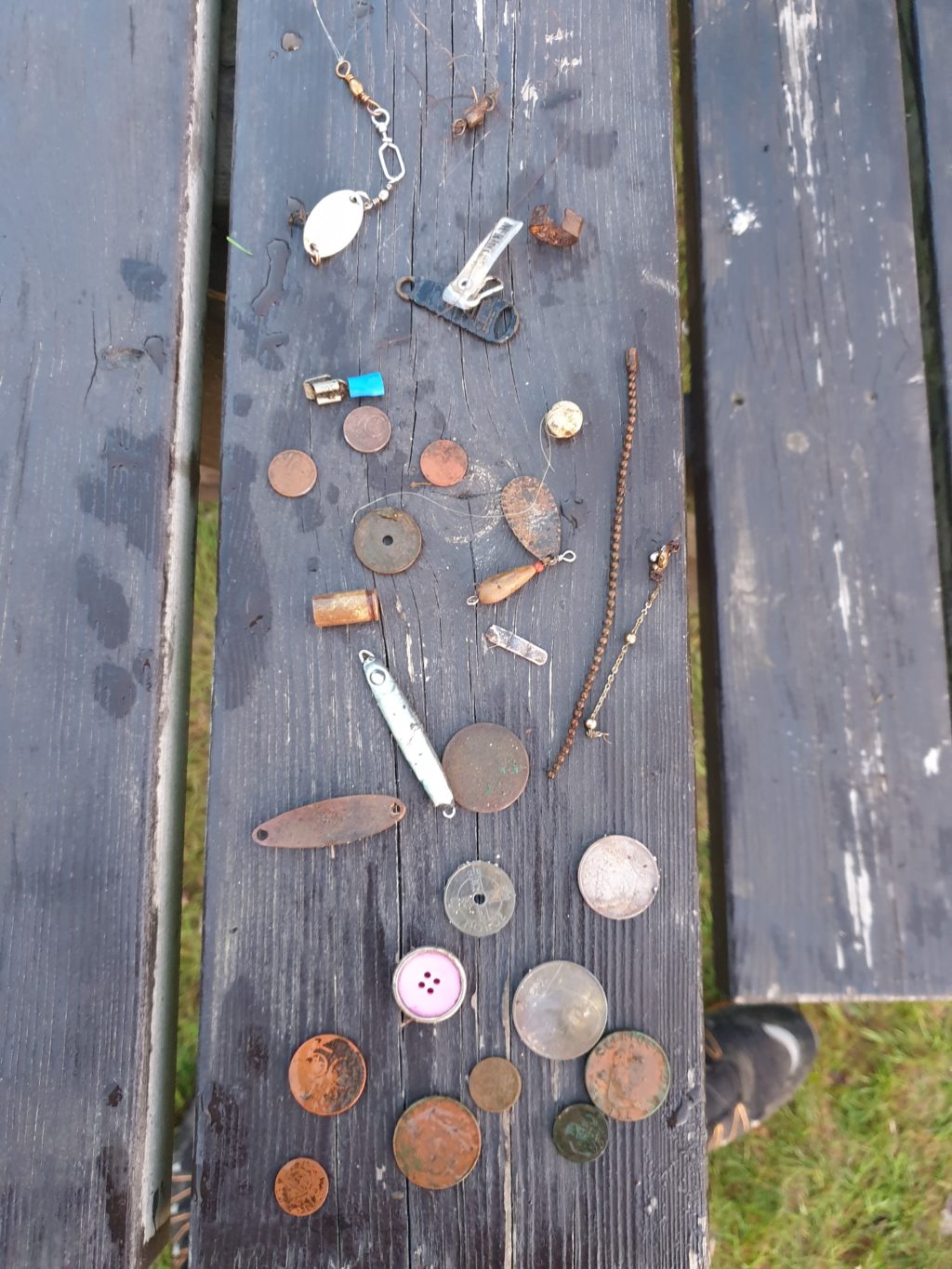 „Pirmas išėjimas ir paieškų rezultatas – krūvelė vinių. Antras išėjimas – jau ir pirma monetėlė, norvegiška krona. Trečias išėjimas – jau trys monetos. Šaunu!“ – prisimena.