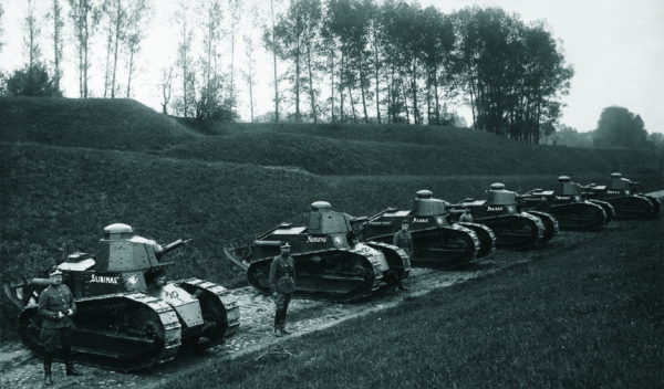 Po nepriklausomybės kovų išaugusi Lietuvos kariuomenė sparčiai modernizavosi visose srityse. Nuotraukoje – šarvuočių rinktinės tankų kuopa 1926-aisiais.