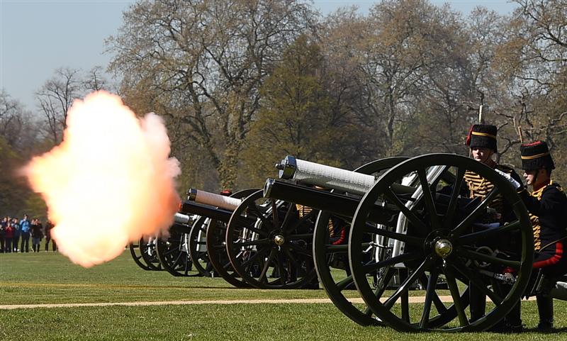 Tradicine 41 salve iš istorinių patrankų Londono Haid parke antradienį paminėtas karalienės Elžbietos II 89-asis gimtadienis.