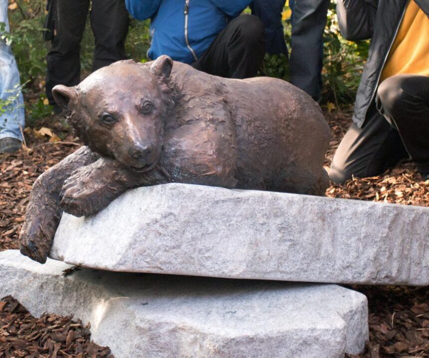 Iš Ukrainos kilusio menininko Josefo Tabachniko sukurta skulptūra „Knutas – svajotojas“ vaizduoja ant dviejų akmenų gulintį lokį.