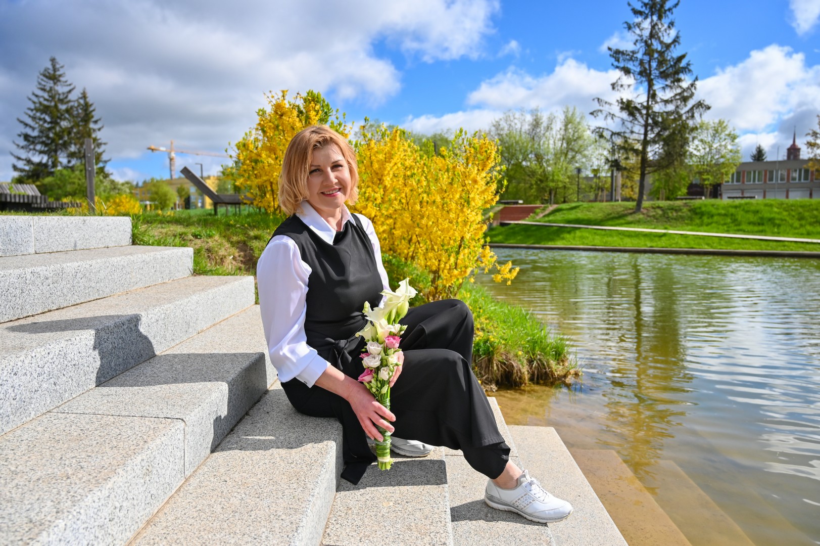 Nauja D. Vaižmužienės aistra – puokščių kūrimas. Gimtadienio proga vaikai mamai padovanojo floristikos kursus.