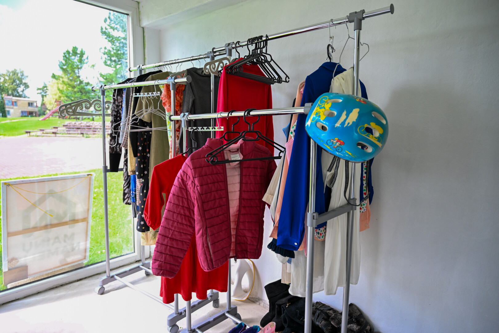 Mainams Ėriškių gyventojai atidavė skėtį, maudymosi kostiumų, skarelių, dviratininko šalmą. Tokių daiktų mainų namelyje buvo ir vakar.