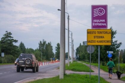 Panevėžio gatvėse pasirodę nauji kelio stendai „Įsijunk šypseną“ skatina vairuoti be pykčio.…