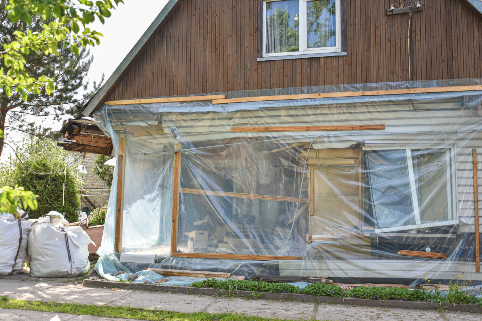 Sutuoktinių žiniomis, abiejų bendrovių ekspertai šiuo metu kaip tik ir aiškinasi, kas racionaliau: griauti iš pamatų išjudintą namą, ar jį remontuoti.