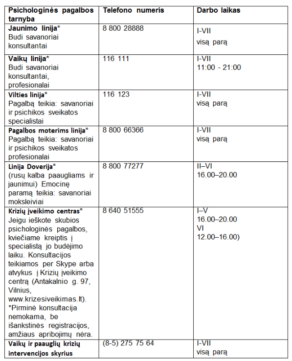 Mes, specialistai, žinome, kokie yra savižudybės rizikos ženklai, ir, juos išgirdę žmogaus pasakojime, nebijome perklausti, ar jis negalvoja apie savižudybę. Nebuvo nė vieno, kuris išsigąstų, jog klausinėjame tokių dalykų, kad išeitų iš kabineto. Matydami, jog klausi ramiai, be priekaištų, smerkimo, žmonės labai atsiveria – jiems tikrai reikia apie tai pasikalbėti.