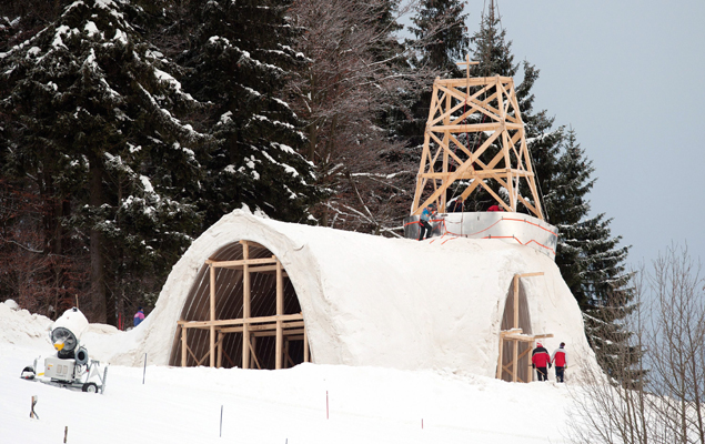 Vokietijos Bavarijos žemėje statoma bažnyčia iš sniego. Jai ketinama panaudoti 1 tūkst. 100 tonų sniego. Bažnyčia bus 26 metrų ilgio ir 11 metrų pločio, joje tilps 190 žmonių. ELTOS nuotr.