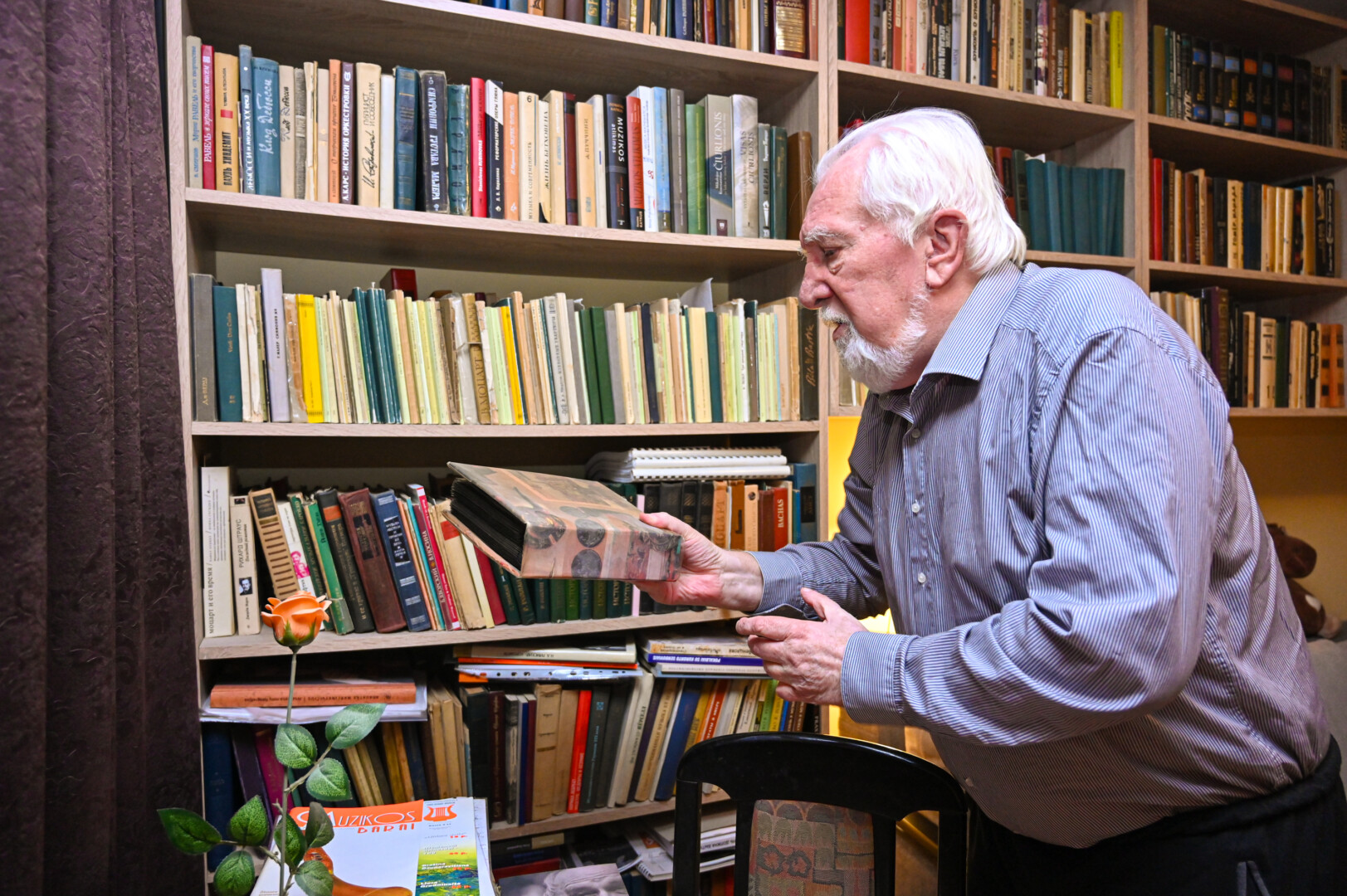 „Jau nebeanalizuoju muzikos, tiesiog ja mėgaujuosi. Čia ji niekada neskamba ir kaip fonas. Aš klausau atidžiai, visiškai atsiduodamas. Jei užsiimu kuo nors kitu, tada man geriausia tyla“, – priduria buvęs pedagogas ir užmena mįslę – tą pačią, kurią taip mėgdavo pateikti savo pamokose.