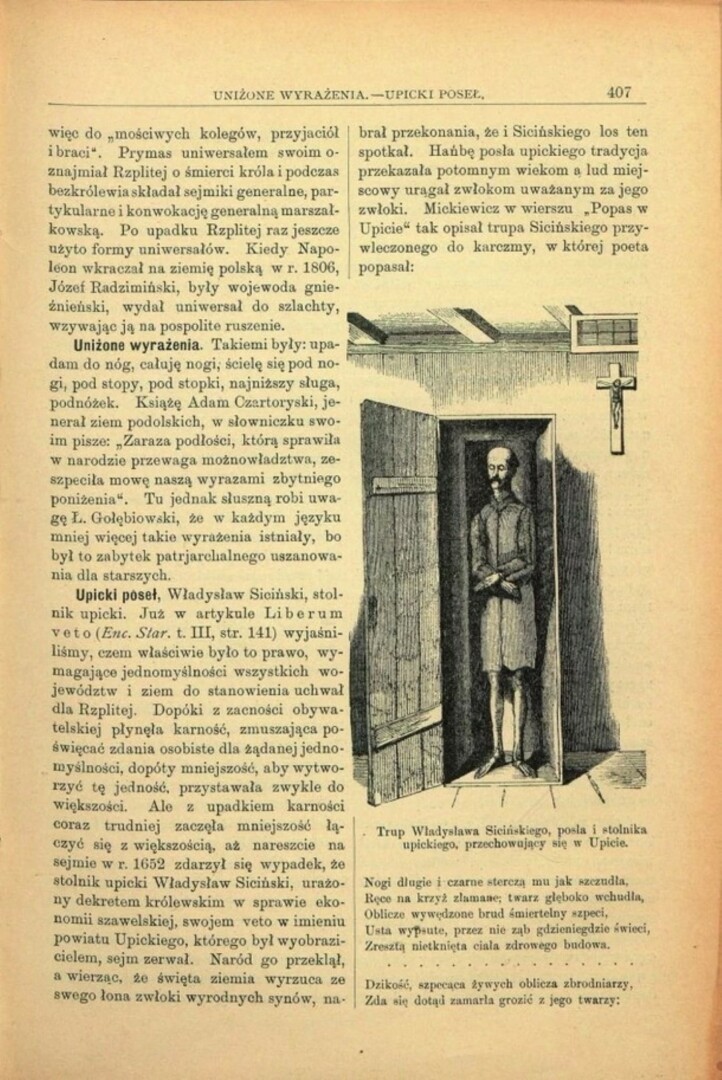 P. Juknevičiaus „Nedorėlyje“ Vladislove Sicinskyje“ irgi minima, jog kūno būta – visiškai išdžiūvusio vidutinio ūgio blondino nuleistomis rankomis. Tik niekas jau dabar nebepasakys, ar tikrai bajoro Sicinskio.